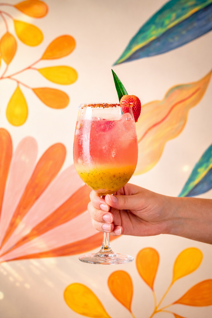 A base de tequila, pulpa de coco natural y 80 gramos de fruta de maracuyá natural